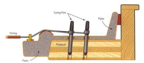 品质再好的钢琴弦,如果在弦轴、压弦条、弦枕、弦码、别弦钉、挂弦钉处,没有获得有效合理的悬挂和支撑,最终也不会发出好的声音。